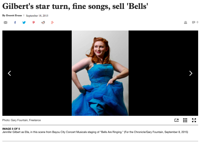 Dominique was featured in Everett Evan's Houston Chronicle review of the musical Bells are Ringing.